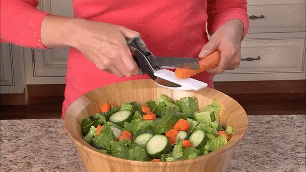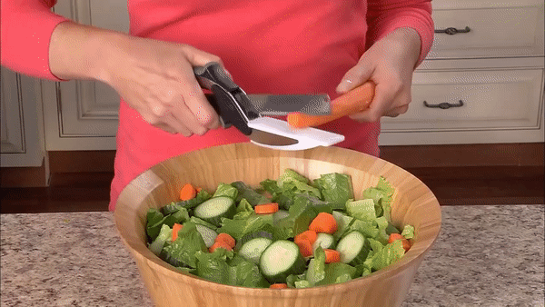 Puteti taia legumele si verdeturile direct in oala, bol, farfurie sau cratita, fara sa mai murdariti si alte ustensile.