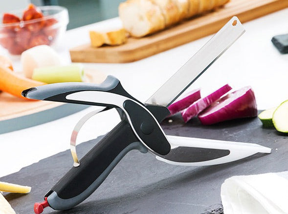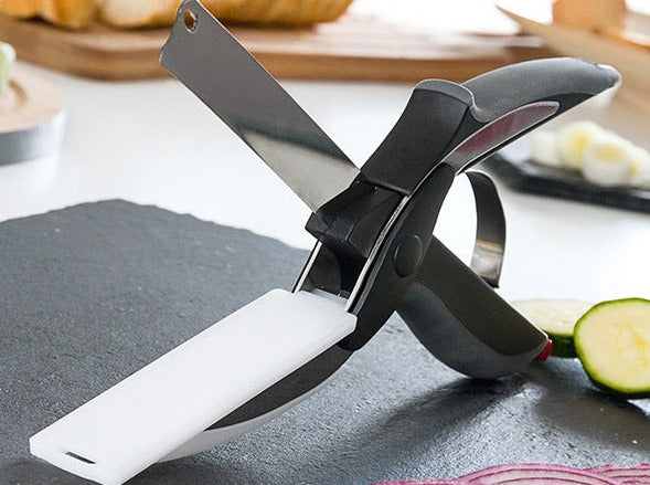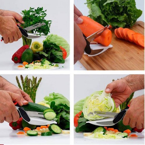 Foarfeca de bucatrie multifunctionala 2 in 1 este un accesoriu nou al carui ajutor in bucatarie este de nepretuit! Datorita sistemului inovator si a lamelor foarte ascutite, acest cutit aduce un plus in eficienta gatitului.