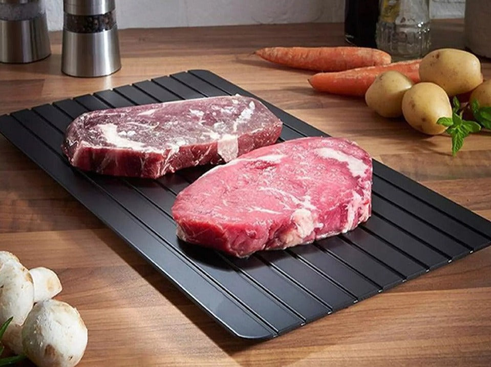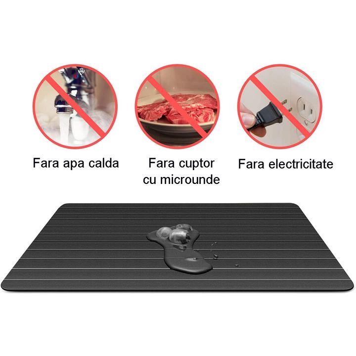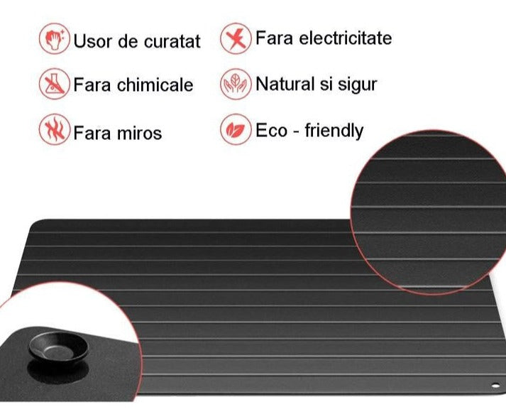 Pur si simplu trebuie sa asezi alimentele congelate pe aceasta tava antiadeziva din metal, iar acestea se vor dezgheta cu pana la de patru ori mai repede fara a-si pierde proprietatile si substantele nutritive.
